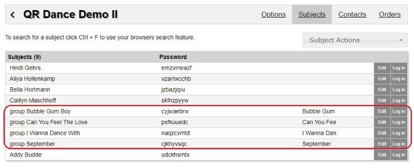 Below is a sample of Group Data included in your Subject Data screen. Note the group images will only appear once after you shoot your project. Each subject will be tagged to the correct group at the shoot.