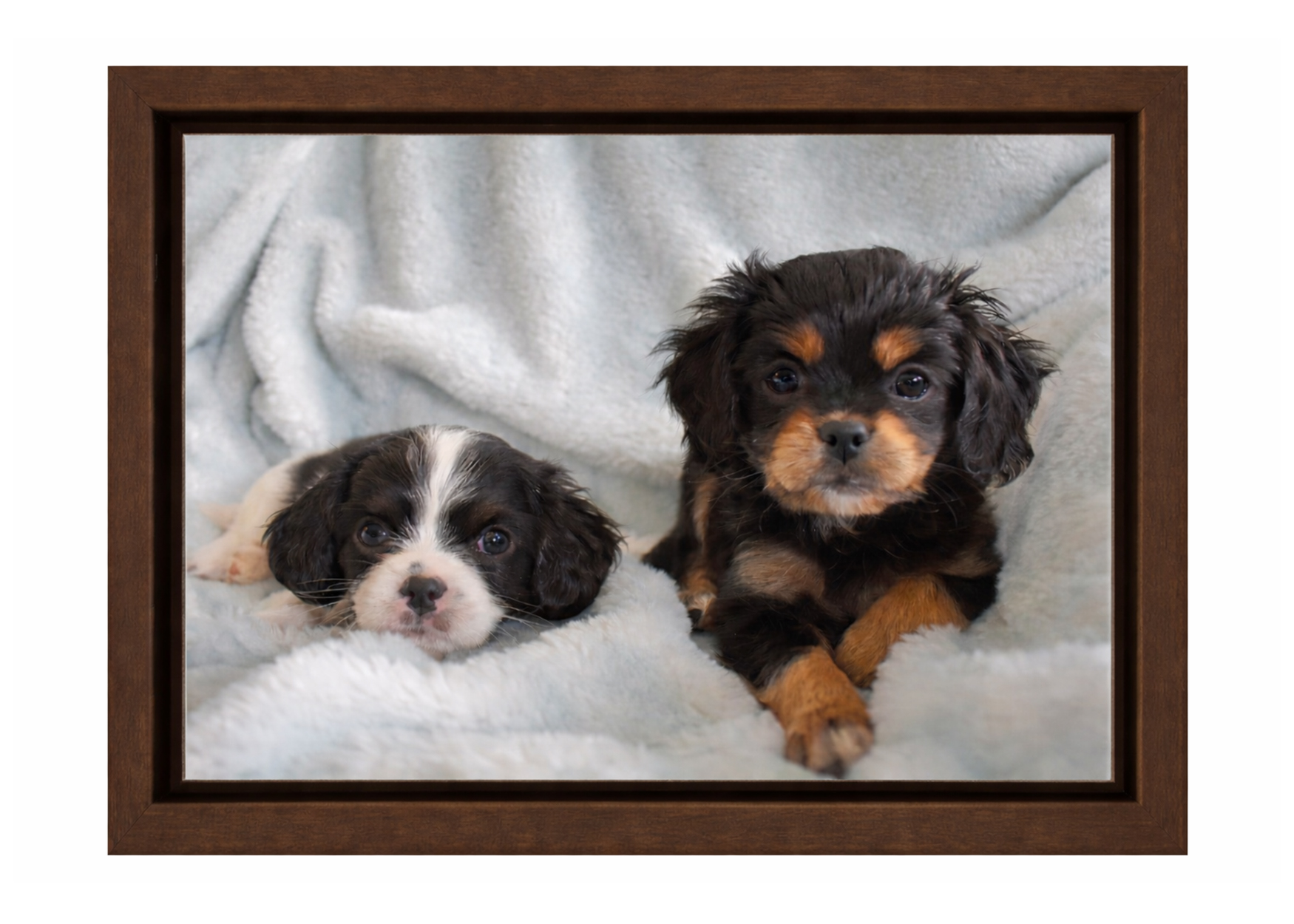 This frame option features a premium gallery wrap mounted within a modern float frame, creating a striking gallery-style presentation. The canvas appears to “float” inside the frame with a subtle 1/2" gap between the artwork and the frame edge, adding depth, dimension, and a clean contemporary look.