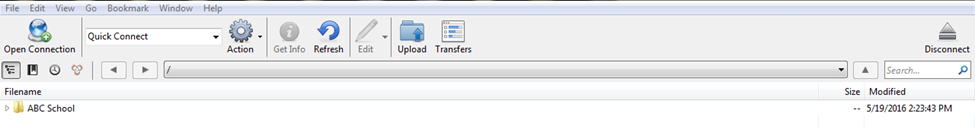 Once connected you will see under filename your anything you have in your FTP with ACI, if Empty it means nothing has been uploaded.