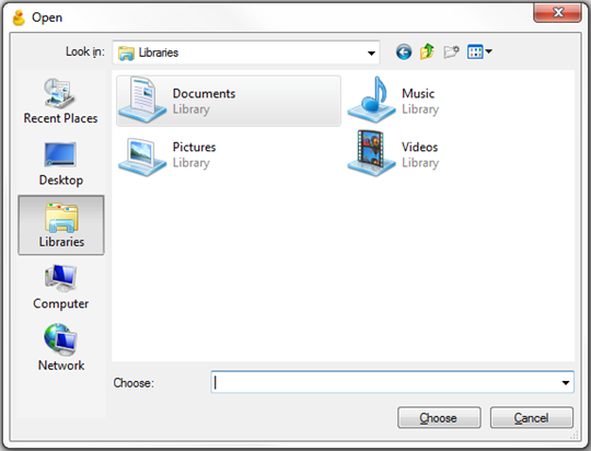 - A new window will pop up called Open, this will allow you to navigate your computer to locate the files/folders to upload & click Choose: