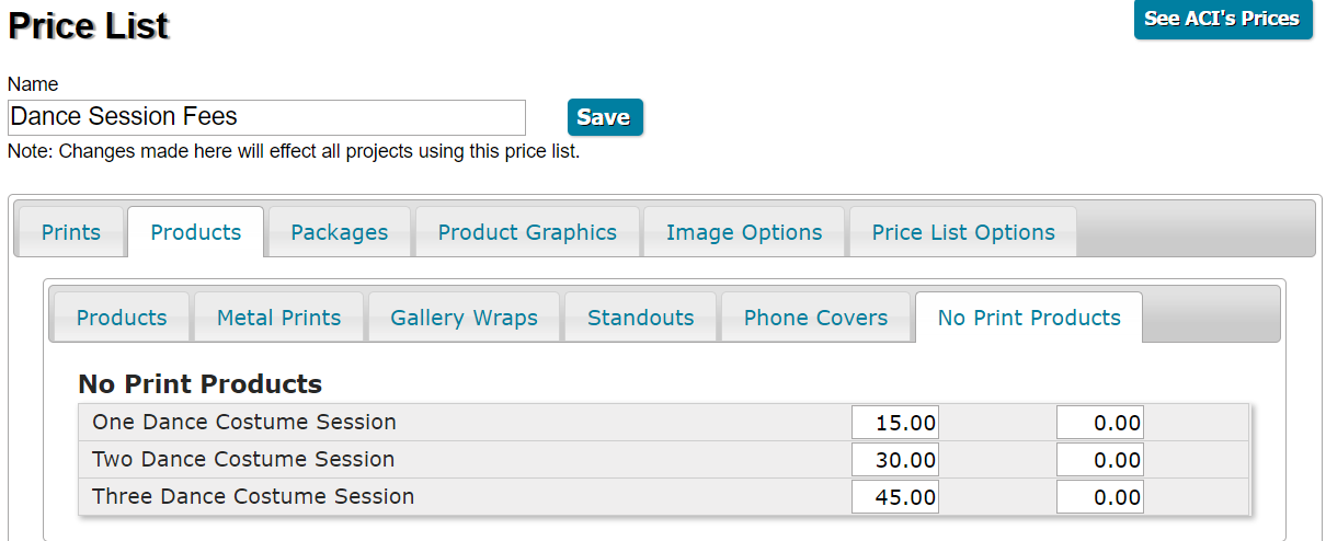 Once created, set the session fee prices in your price list