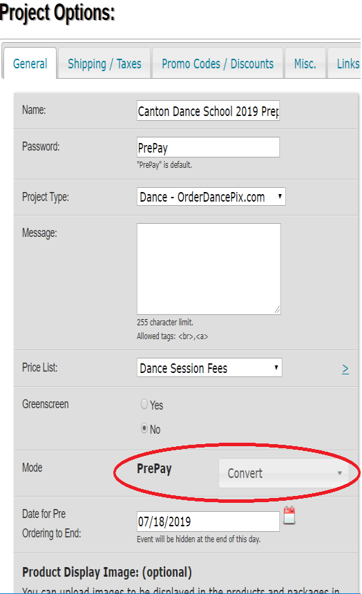 Go to the Project Options > General tab … see Prepay and Convert with a pull down available
