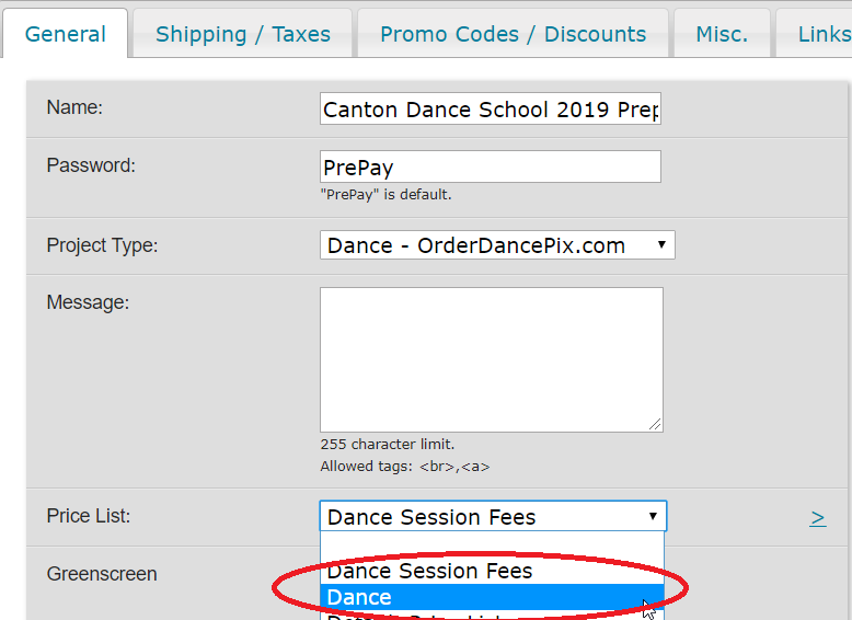 Also, change the price list that is to be applied to this project while in Proof / Reorder mode. Do this in the same screen