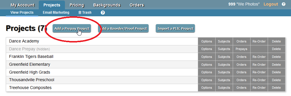 In OSP, create a new PrePay project...