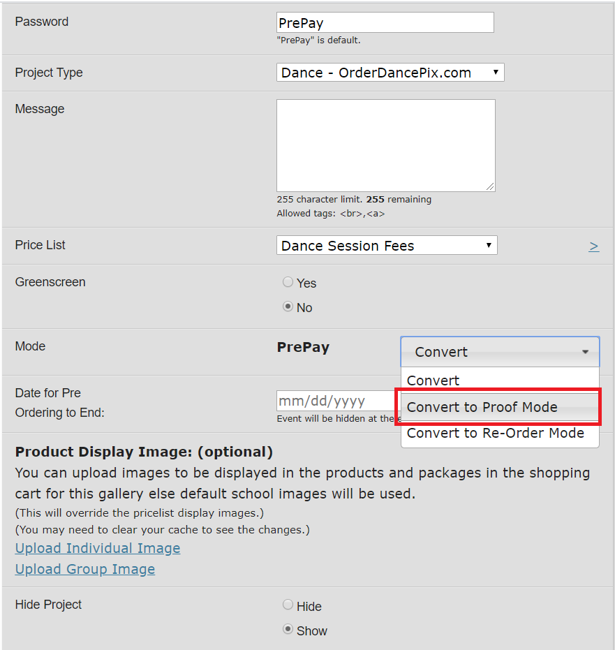 Convert the project from Prepay to Proof