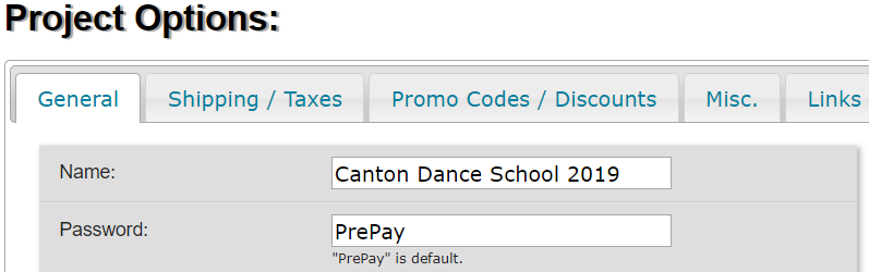 Lastly, while in this screen, change the name of the project by dropping the word Prepay. Note that the Password can remain as PrePay as it is now irrelevant.