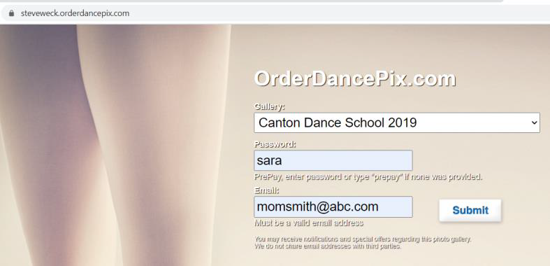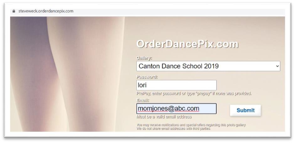 Janet Jones / momjones@abc.com logs in with the same email address that she purchased the sitting credit with